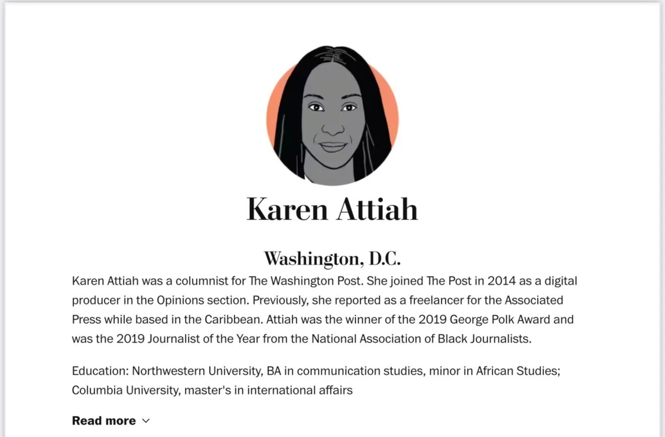 In addition to television personalities, a writer for the Washington Post was fired from her job after discussing Kirk’s own statements. Karen Attiah cited a statement from Kirk that “Black women do not have the brain processing power to be taken seriously. You have to go steal a white person’s slot.” Attiah’s biography page is still on the Washington Post website, which is attached below: